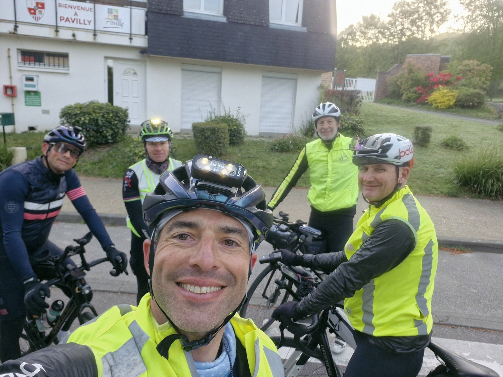 . Le jour se lève et ça fait du bien, pour la fin on connaît bien les routes qui sont nos routes d'entraînement, passage du pont de brotonne et ensuite derniers kms et dernière montée pour rejoindre bouville et pavilly.